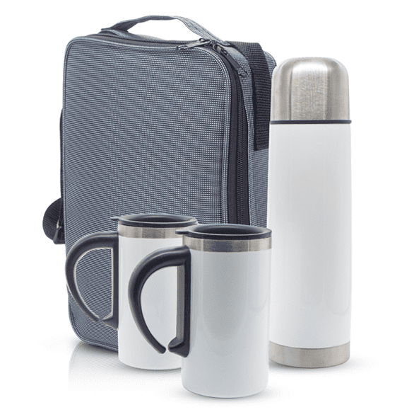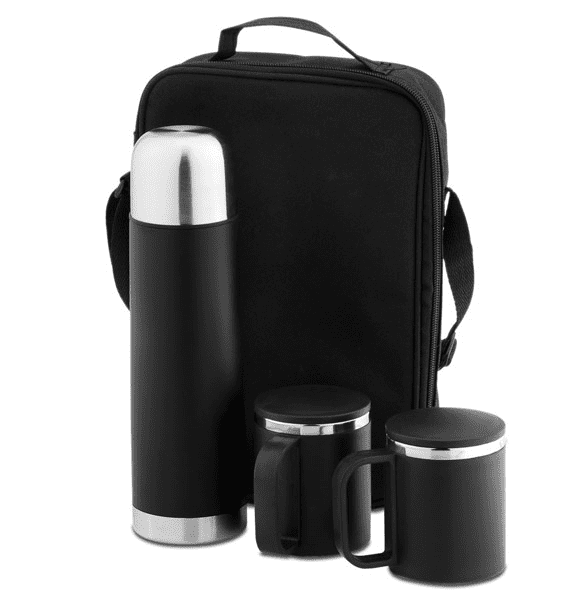 סט טרמוס 0.5 ליטר ושני ספלים , בתיק מבד קורדורה