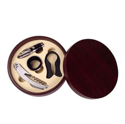 סט 4 אביזרי יין בקופסאת עץ עגולה