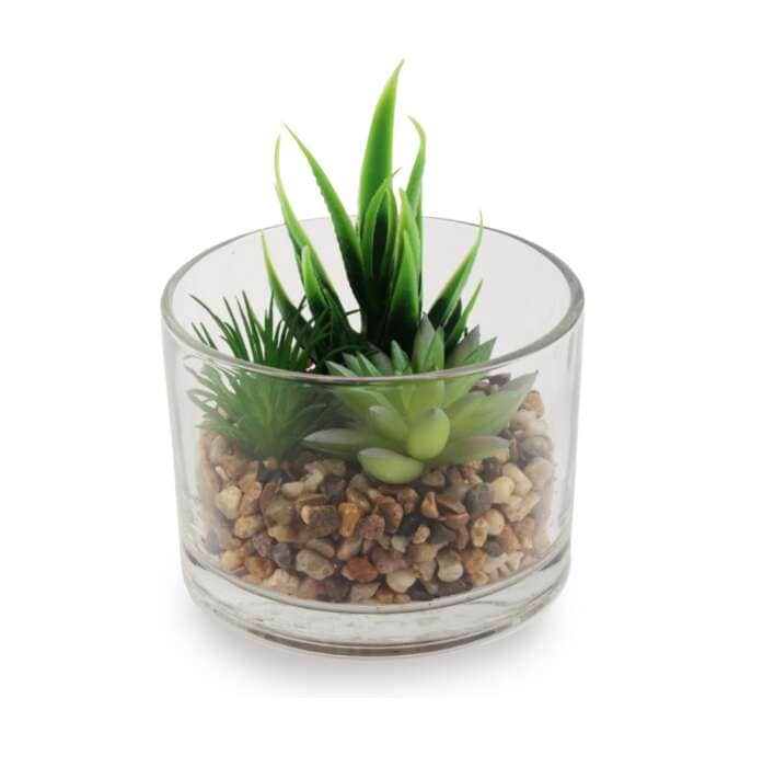 3 סוקולנטים וקקטוסים בכלי זכוכית