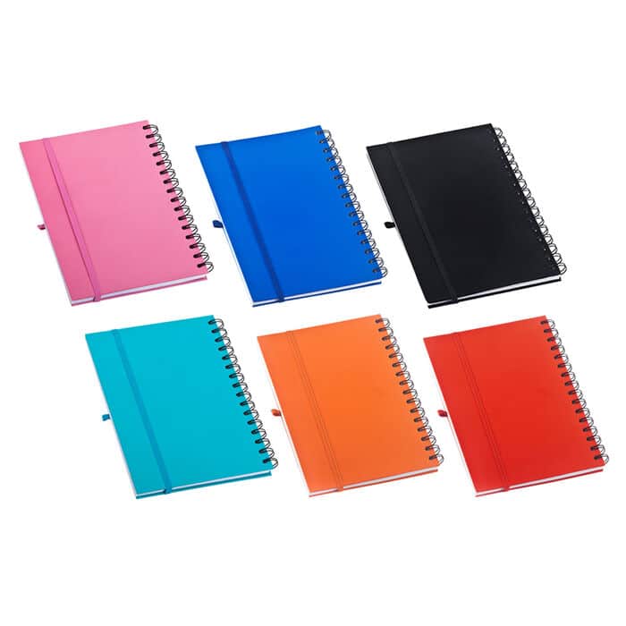 מחברת ספירלה עם כריכה קשה במגוון צבעים.