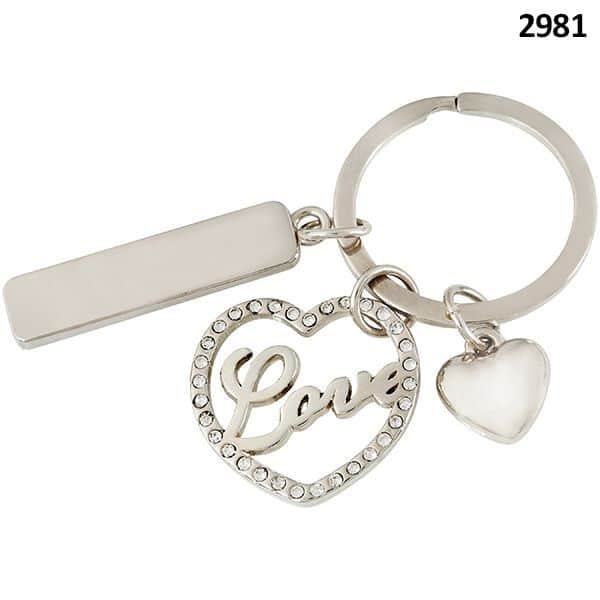 מחזיק מפתחות מתכתי משובץ באבנים "LOVE" עם לוחית מלבנית למיתוג