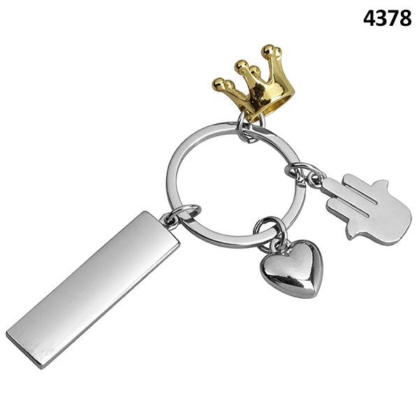 מחזיק מפתחות מתכתי "חמסה, לב, כתר זהב" עם לוחית מלבנית למיתוג
