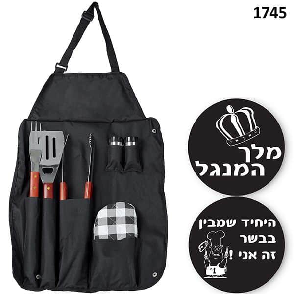 ערכת מנגל סינור עם 6 כלים לברביקיו (סינר עם או בלי כיתוב)