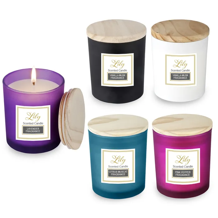 נר ריחני בכוס זכוכית עם מכסה במבוק – לילי