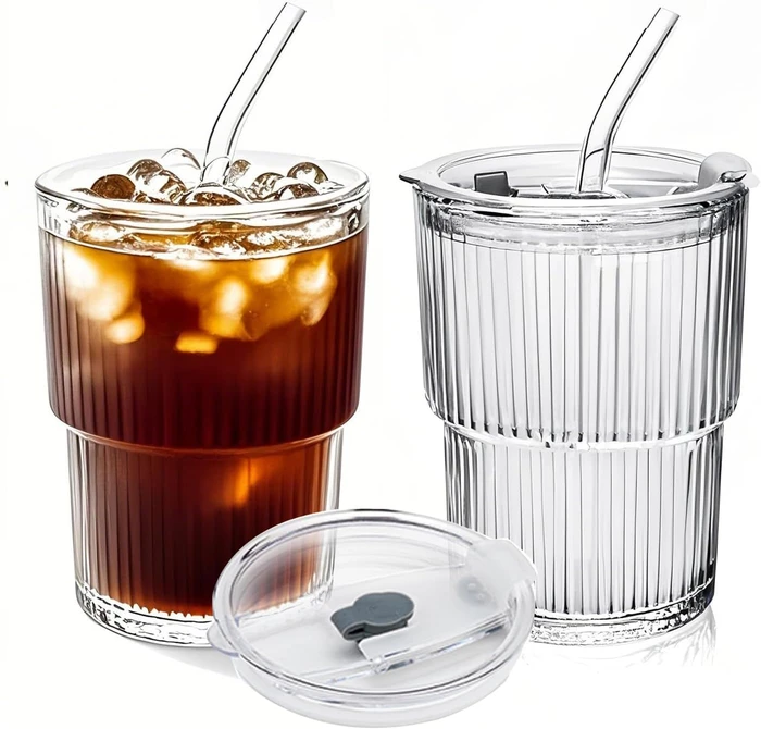 מכסה פלסטיק לשתייה חמה/קרה, קש זכוכית .