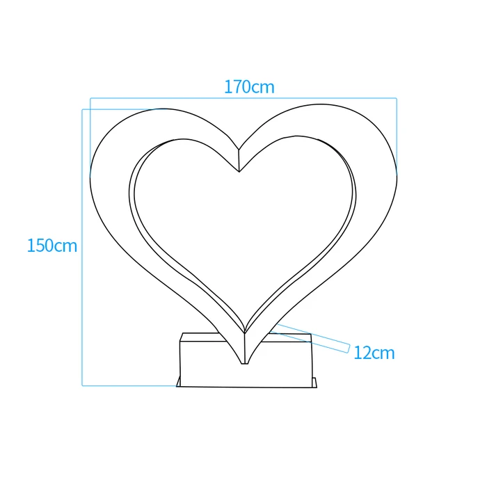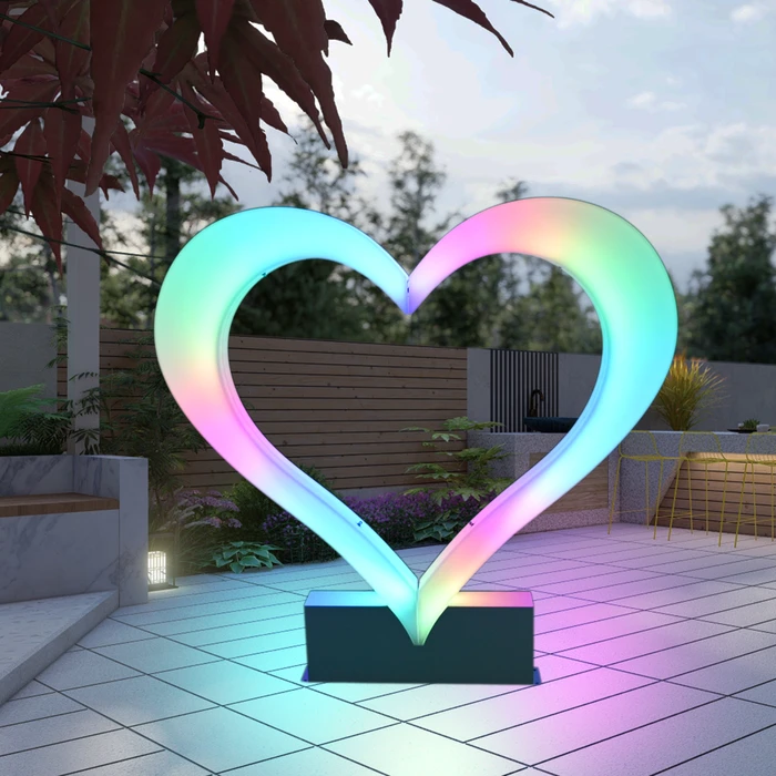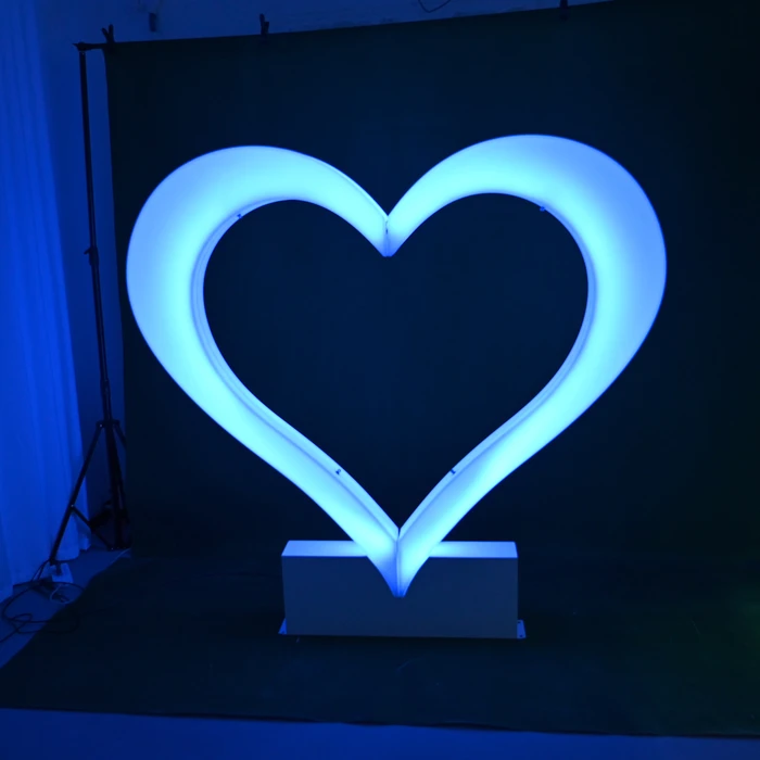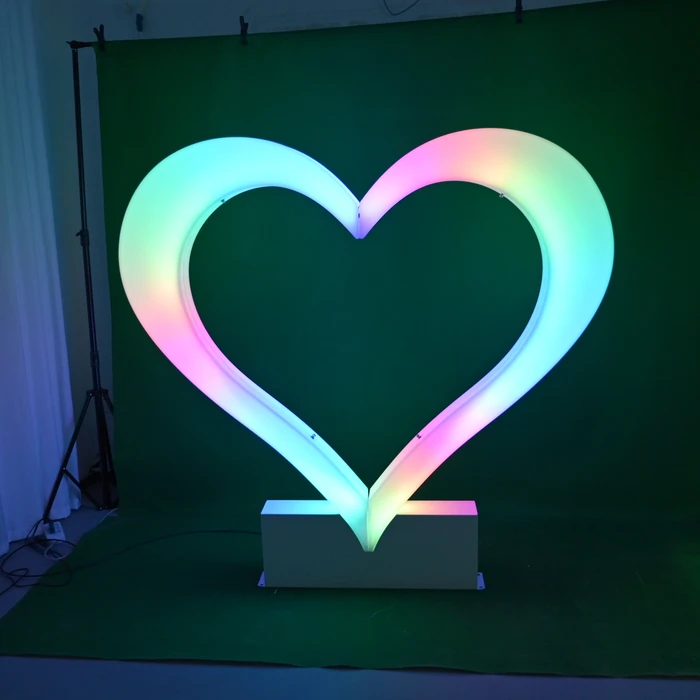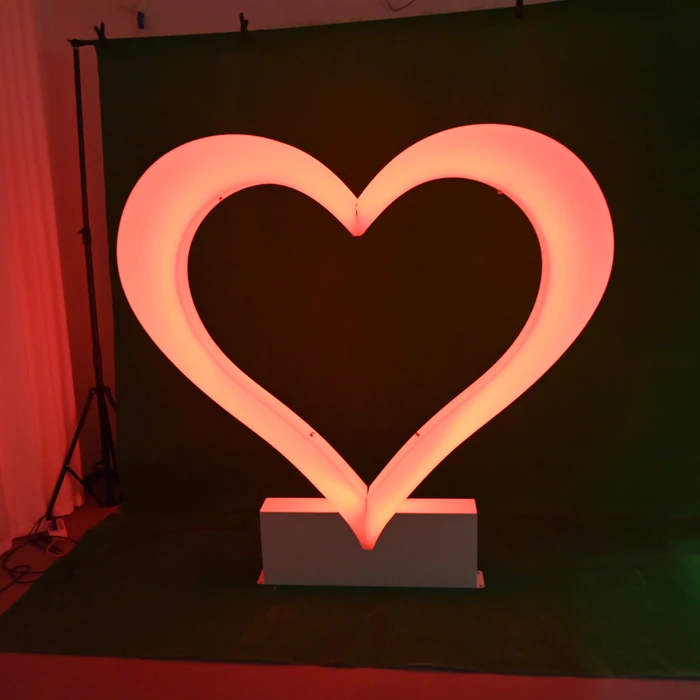תאורת LED צבעונית: הלב מצויד בתאורת LED מתחלפת, המאפשרת להאיר בצבעי המותג שלכם או בכל צבע שתרצו. האור יוסיף אווירה קסומה ואוהבת לכל אירוע.