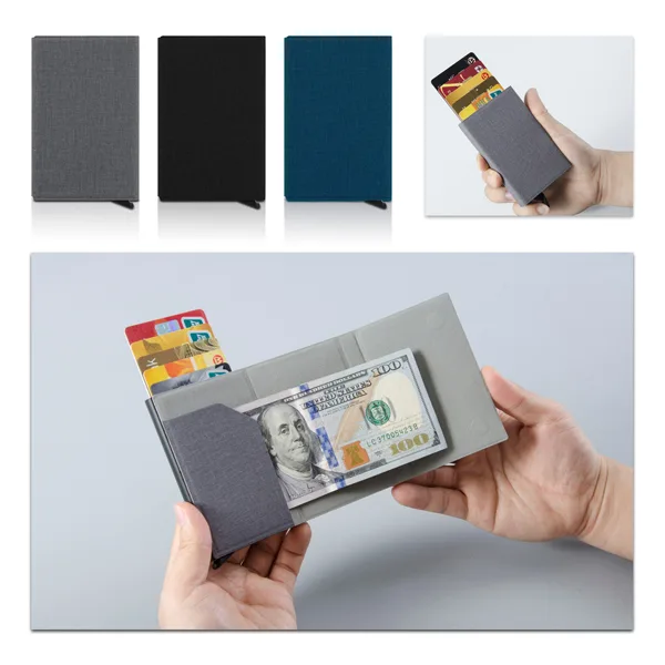 ארנק שולף כרטיסים ממתכת ודמוי עור